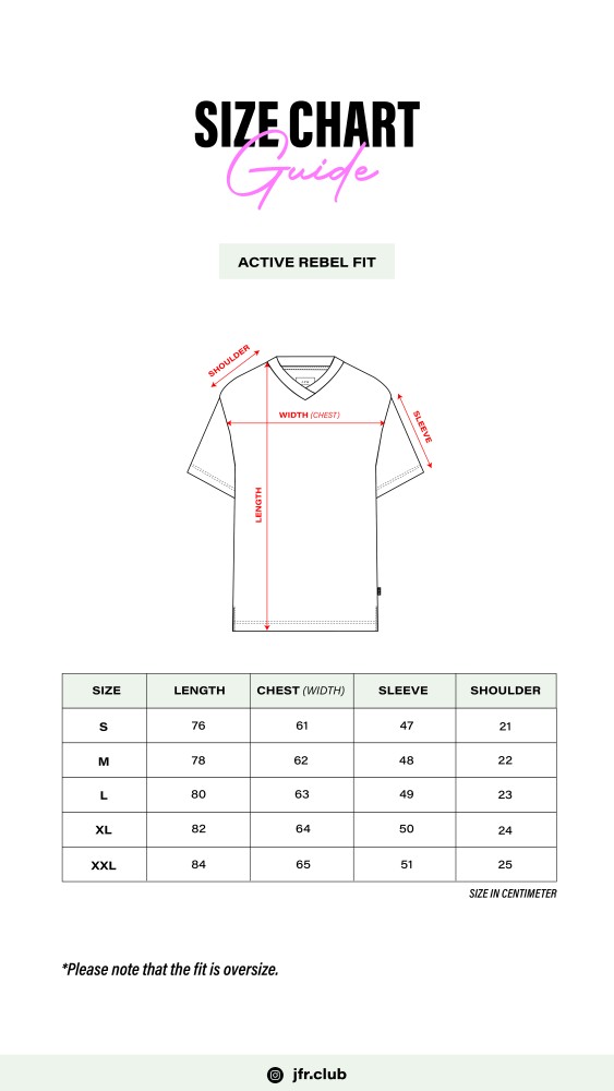 The Active Rebel Fit is a full-sublimation statement piece inspired by the bold energy of the ‘90s. Covered entirely in expressive prints, it features the REBELS CLUB message on the front with a custom JFR badge, and a large Rebels Club 90 graphic on the back — a nod to vintage sports culture reimagined with a feminine twist. A side label tag adds a subtle, refined detail, completing the premium look.