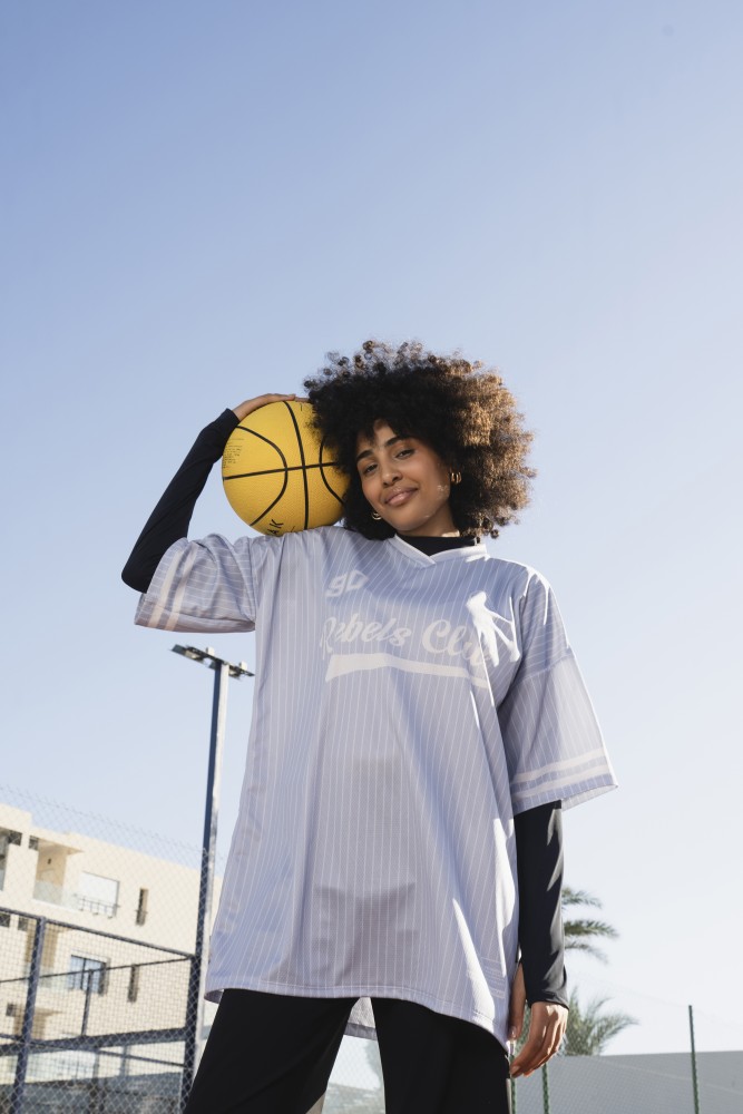 Made from ultra-light nid d’abeille net fabric, it offers breathability, fluid movement, and effortless comfort. The oversized fit ensures maximum coverage while embracing women who are both soft and strong.