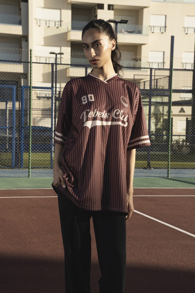 The Active Rebel Fit is a full-sublimation statement piece inspired by the bold energy of the ‘90s. Covered entirely in expressive prints, it features the REBELS CLUB message on the front with a custom JFR badge, and a large Rebels Club 90 graphic on the back — a nod to vintage sports culture reimagined with a feminine twist. A side label tag adds a subtle, refined detail, completing the premium look.