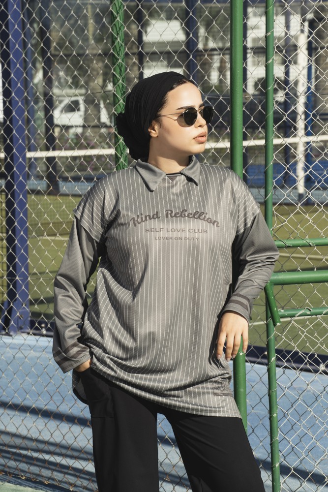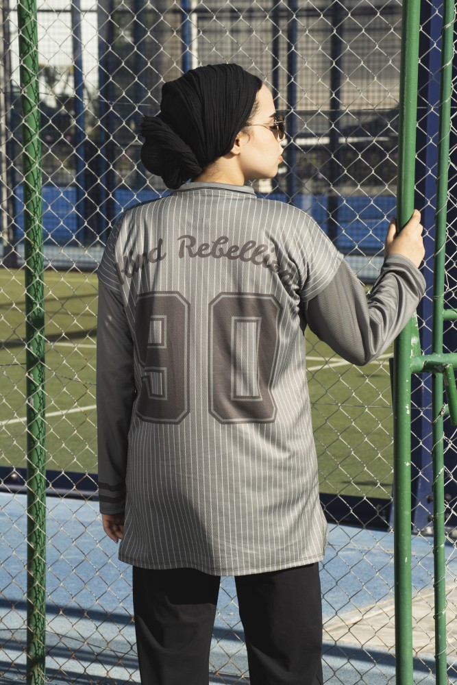 The Hybrid Rebel Fit is a bold full-sleeves, mid-thigh jersey with a double-collar detail made with nid d’abeille mesh fabric. Designed to look like layered double pieces, the contrasting sleeves create playful visual, while the oversized fit ensures comfort and freedom of movement.
